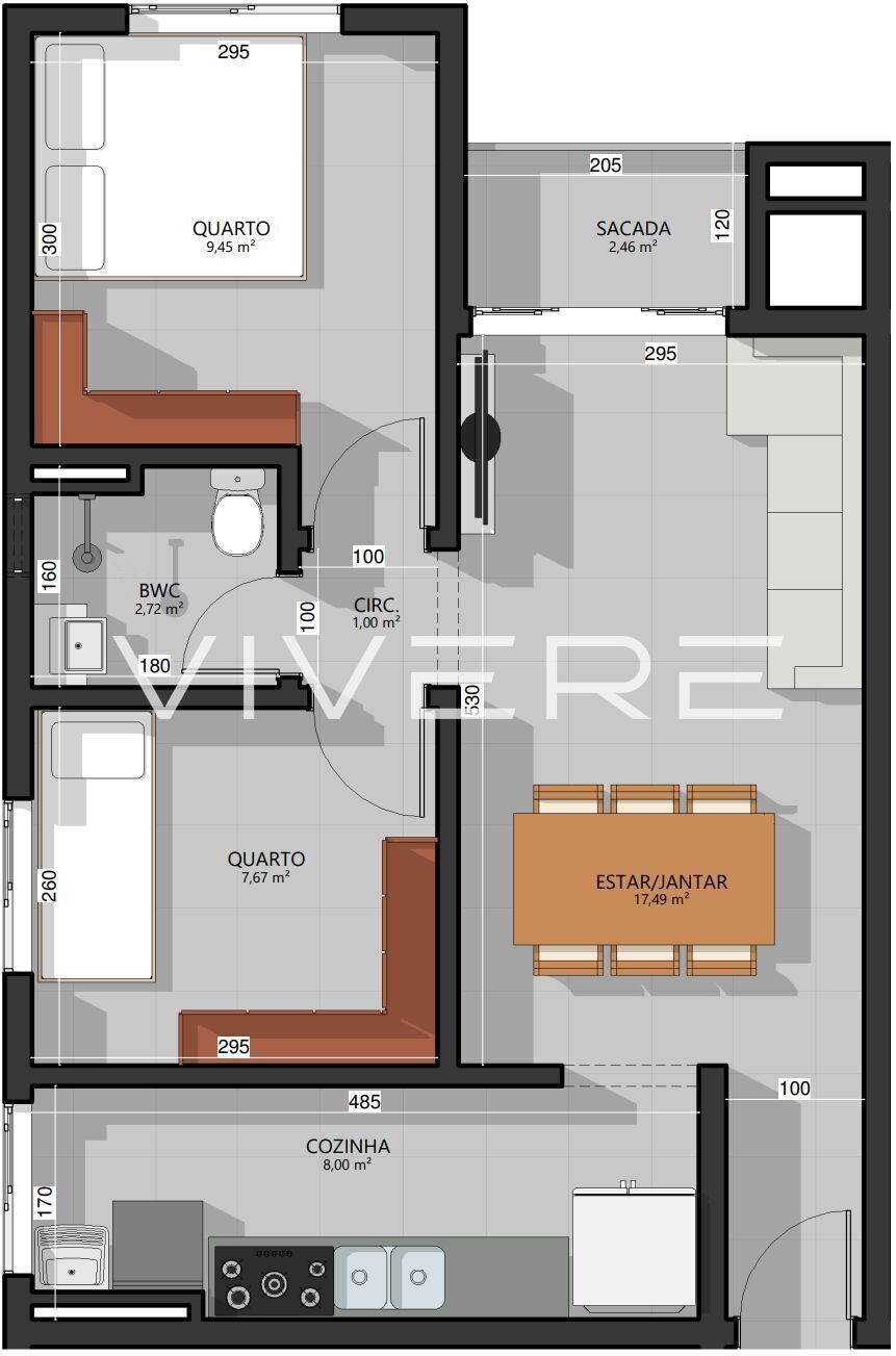2 Dormitórios1 Banheiro1 VagaGaragem Coberta1 Cozinha1 Sala de jantar1 Sala de estar